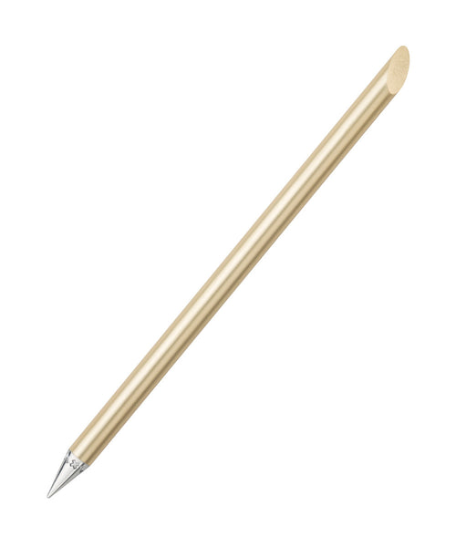 This pen has a soft alloy tip that will leave a written line on paper and other surfaces. The tip can be sharpened by using fine sandpaper but it is unlikely you will need to sharpen it often. At 163mm long, this is the same size as many everyday pens but lasts forever!