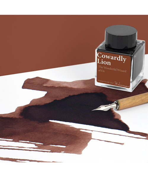 Cowardly Lion is a red-brown coloured ink that reminds one of the lion's mane. It has a large difference in darkness depending on the amount of ink used.