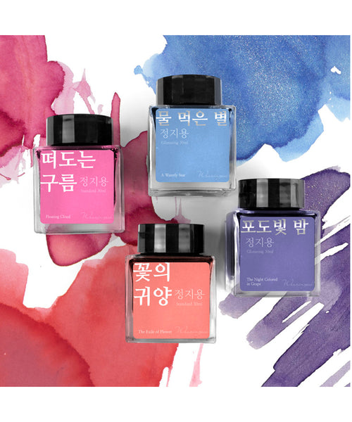 This set of four inks from the Wearingeul Jeong Ji-Yong series features the four inks from the series - A Watery Star, Floating Cloud, The Exile of Flower and The Night Coloured in Grape (glistening version).
