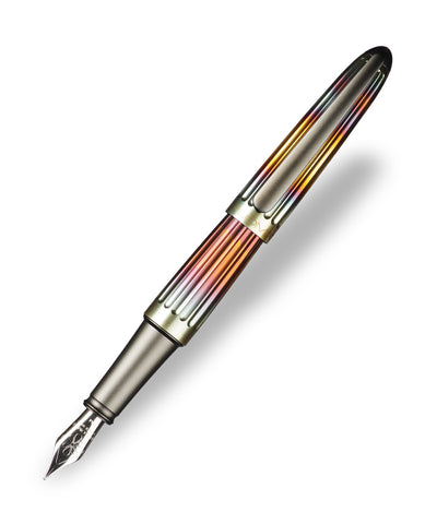 The Diplomat Aero fountain pen comes with a choice of 14ct bi-colour gold or polished stainless steel nib in sizes Extra Fine, Fine, Medium or Broad, has an ink converter included and is presented in an aluminium and card gift box.