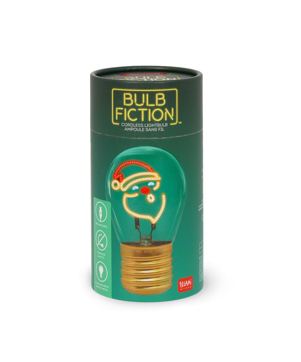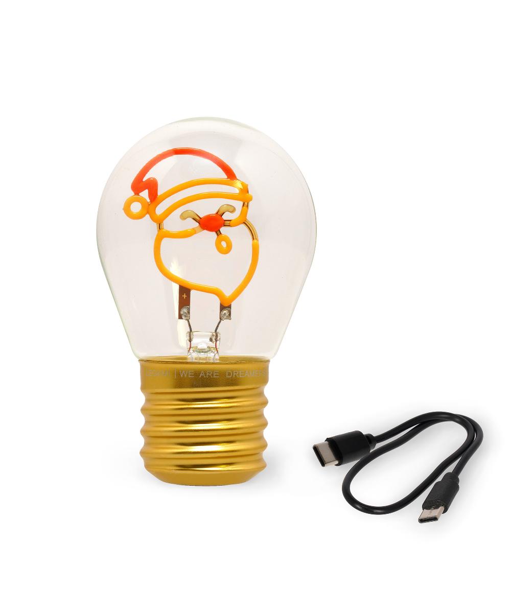 Lightbulb shaped table lamp. Wireless and rechargeable with a USB type-C charging cable included.