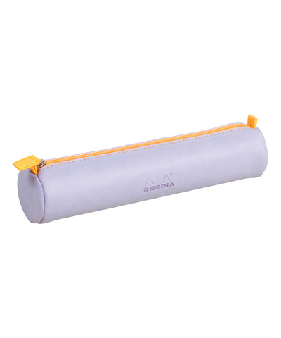 Attractive, colourful pencil case suitable for storing all types of pens and pencils from Rhodia. Features an Italian leatherette exterior with the Rhodia logo embossed, an orange leatherette zip puller and an ivory jersey inner lining.