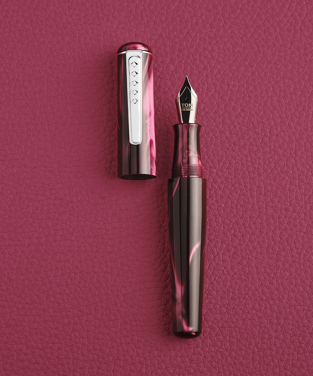 Introducing Castle Claret, the latest design in Tom Hessin’s, Charles Collection. The Castle Claret fountain pen is a modern masterpiece rooted in five generations of pen craftsmanship. Made in Britain and crafted from high-grade European resin, the Castle Claret fountain pen boasts a sleek design with a highly polished finish.