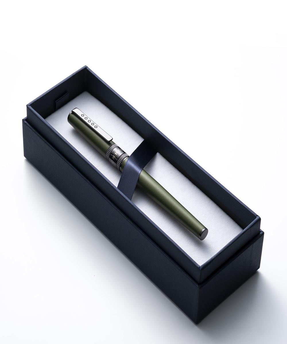 Rebel Garrison Green is complete with a tapered lacquer barrel and PVD JoWo nib, offering a smooth lay down of ink on the page. Each nib is protected by a satisfying push close cap, complete with attractive band featuring the Tom Hessin logo. Adorning the cap is a gunmetal band, and a gunmetal clip that features the five diamond detail and is emblematic of the five generations that span the Tom Hessin legacy.