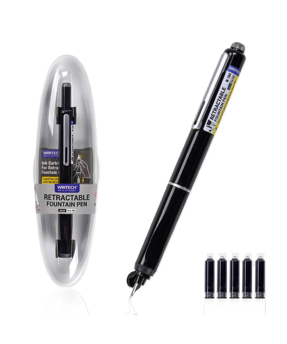 About the WRITECH Retractable Fountain Pen Black (Blue Ink)