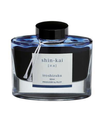About Pilot Iroshizuku Ink - Shin Kai (Deep Sea) Enjoy Japan's rich and subtle colour aesthetic as you write with Iroshizuku fine fountain pen ink. Available in 24 vibrant and exciting colours. The name "iroshizuku" is a combination of the Japanese words "iro" (colouring) expressing high standards and variation of...
