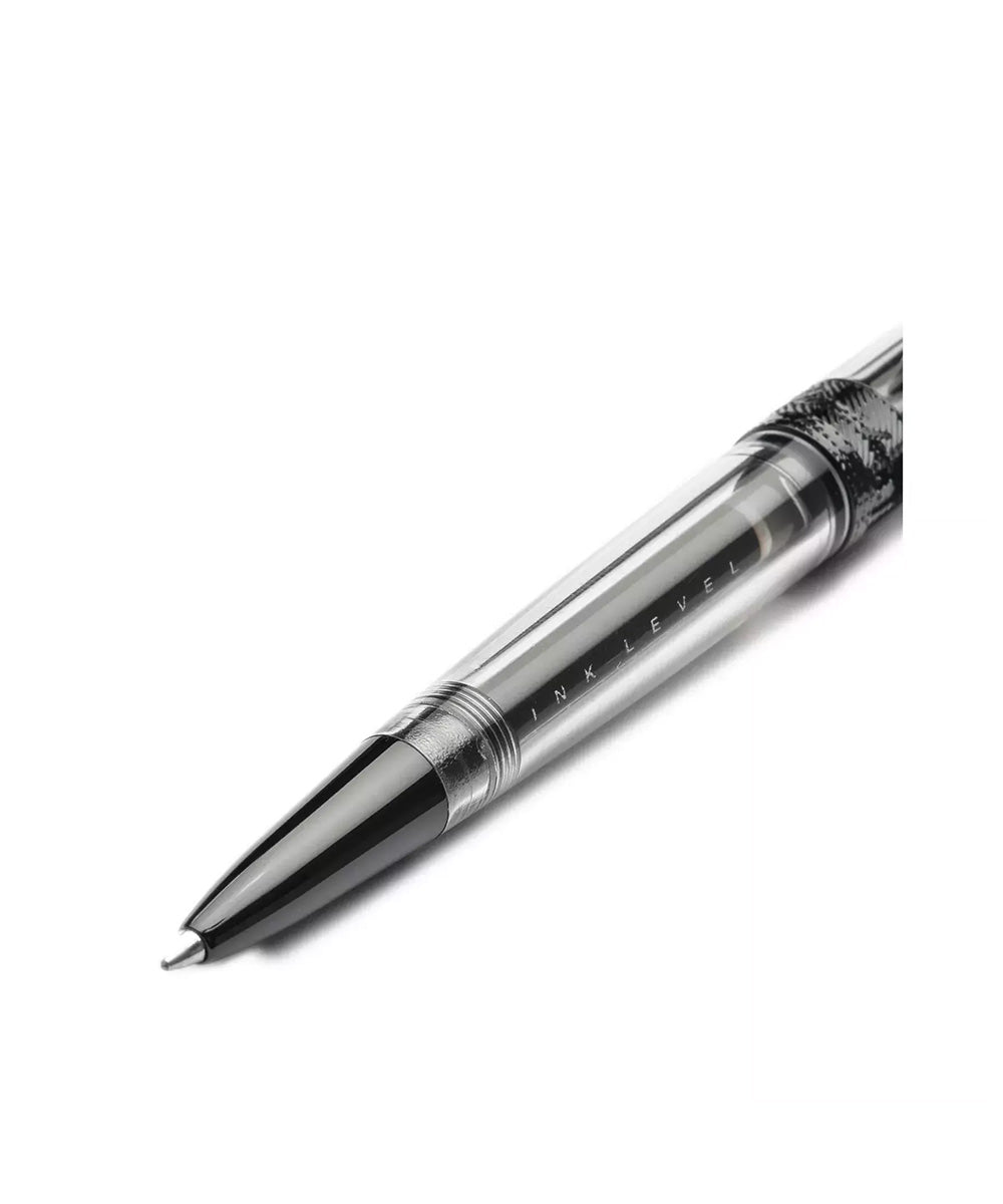 The Avatar UR Demo Metal Ballpoint pen is is inspired by the film Avatar. The cap ring is a tribute to the Florence skyline, and the clip evokes a goose feather. Made in resistant transparent ultra-resin, the pen mechanism is visible and the ink indicator inside can be monitored. Stainless steel, black-plated tip with a rotating cap lock system.