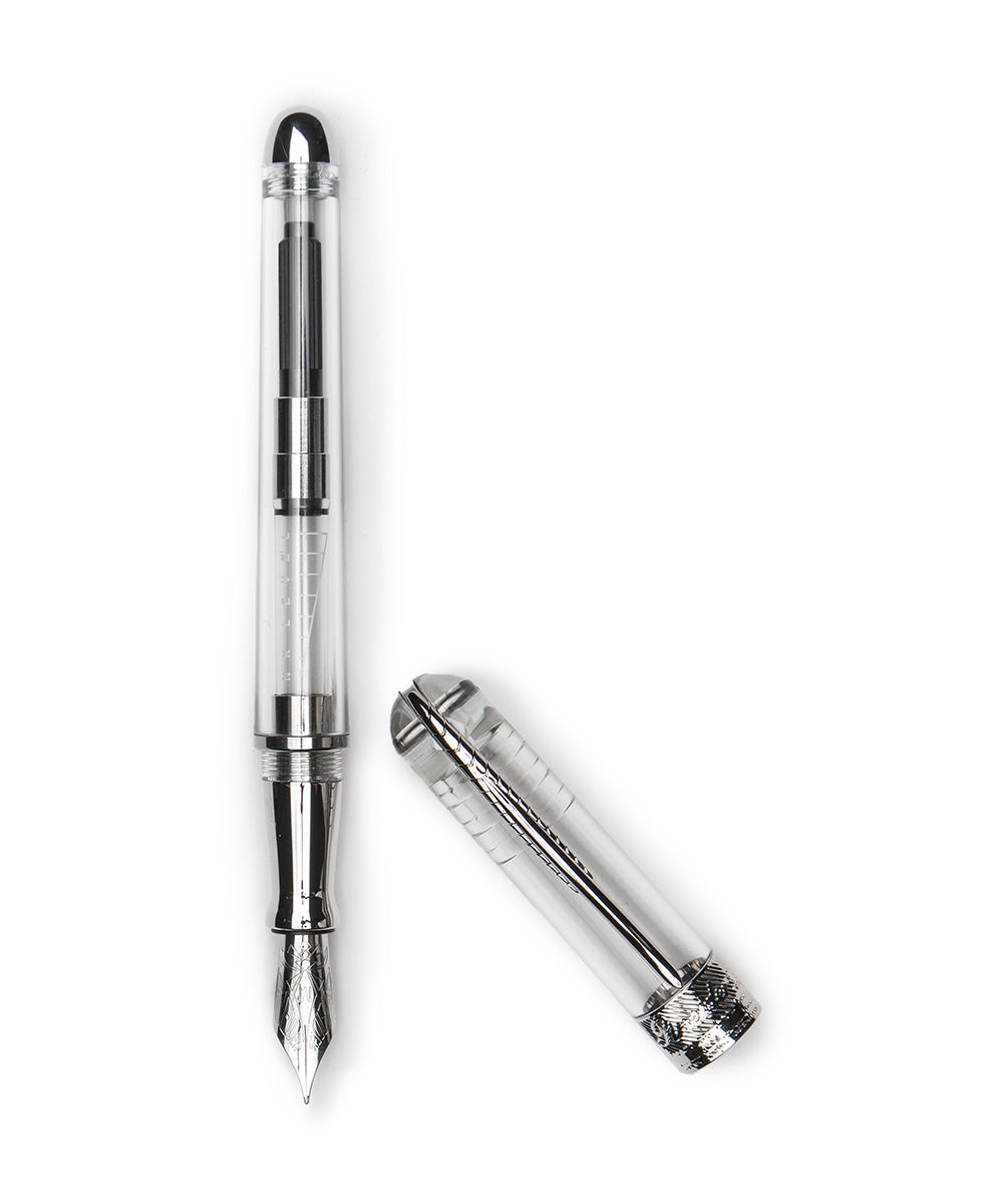 The Avatar Demonstrator fountain pen from Pineider is made of pure machined resin, crystal clear, with chromium appointments and the signature sprung quill clip. Avatar’s cap ring bears the skyline of the city of Florence representing a loving relationship that lasted for 240 years between the Brand and the city.