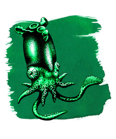 About Fountain Pen Ink - Bobtail Squid Green The “hummingbird” bobtail squid is one of the most beautiful and colourful animals alive today. It’s vibrant and iridescent colouration can change from moment to moment, as the bobtail squid has chromatophores in it’s skin that can expand and contract tiny pockets of colouration. Actually...