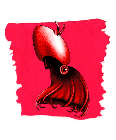 About Fountain Pen Ink - Vampire Squid Red The vampire squid may look a bit like a blood sucking monster, but it isn’t as fearsome as it looks. The vampire squid’s arms are all connected together with a cloak, the underside of which is lined with what appears to be spikes, but don’t...