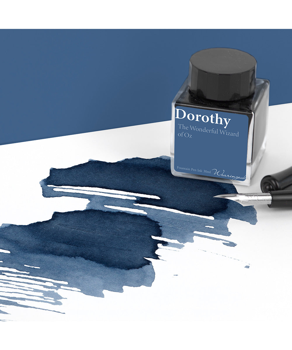 Dorothy is a pastel-toned greyish blue ink with an attractive subtle colour tone. The blue tone stands out more when used with a glass or dip pen, the grey tone stands out more when used with a fountain pen.