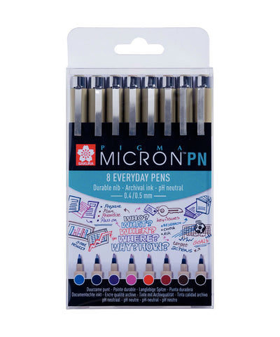 The Sakura Pigma Micron PN is a pigment liner pen that has a plastic nib (PN) which is suitable for every day, multi-purpose writing yet has the same quality Pigma ink performance. Contains permanent, waterproof, archival quality ink that conforms to ASTM D4236. The durable Plastic Nib (PN) provides skip-free writing in eight popular...
