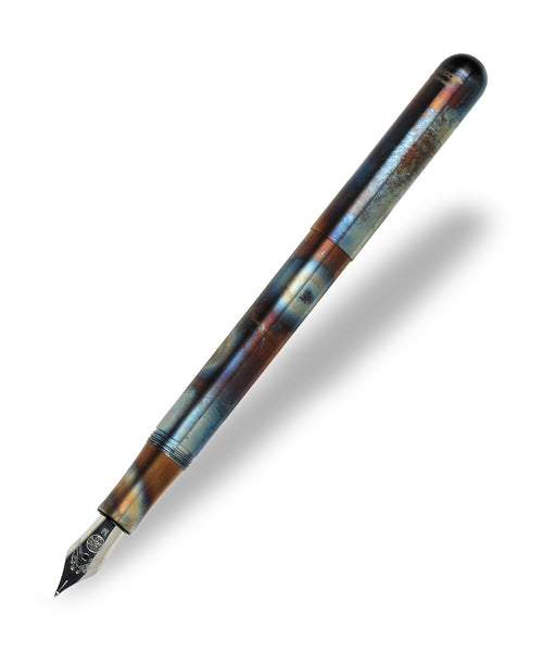 The Liliput Fireblue Steel fountain pen is produced by heat treating with a blowtorch resulting in no two pens being alike! At just 97mm when closed, this is a compact pen, great for pocket or purse, but when open is a respectable and well balanced 126mm. Fitted with a polished stainless steel nib available in sizes Extra Fine, Fine, Medium, Broad and Extra Broad, this pen takes international standard cartridges or the Kaweco squeeze converter if bottled ink is your preference.