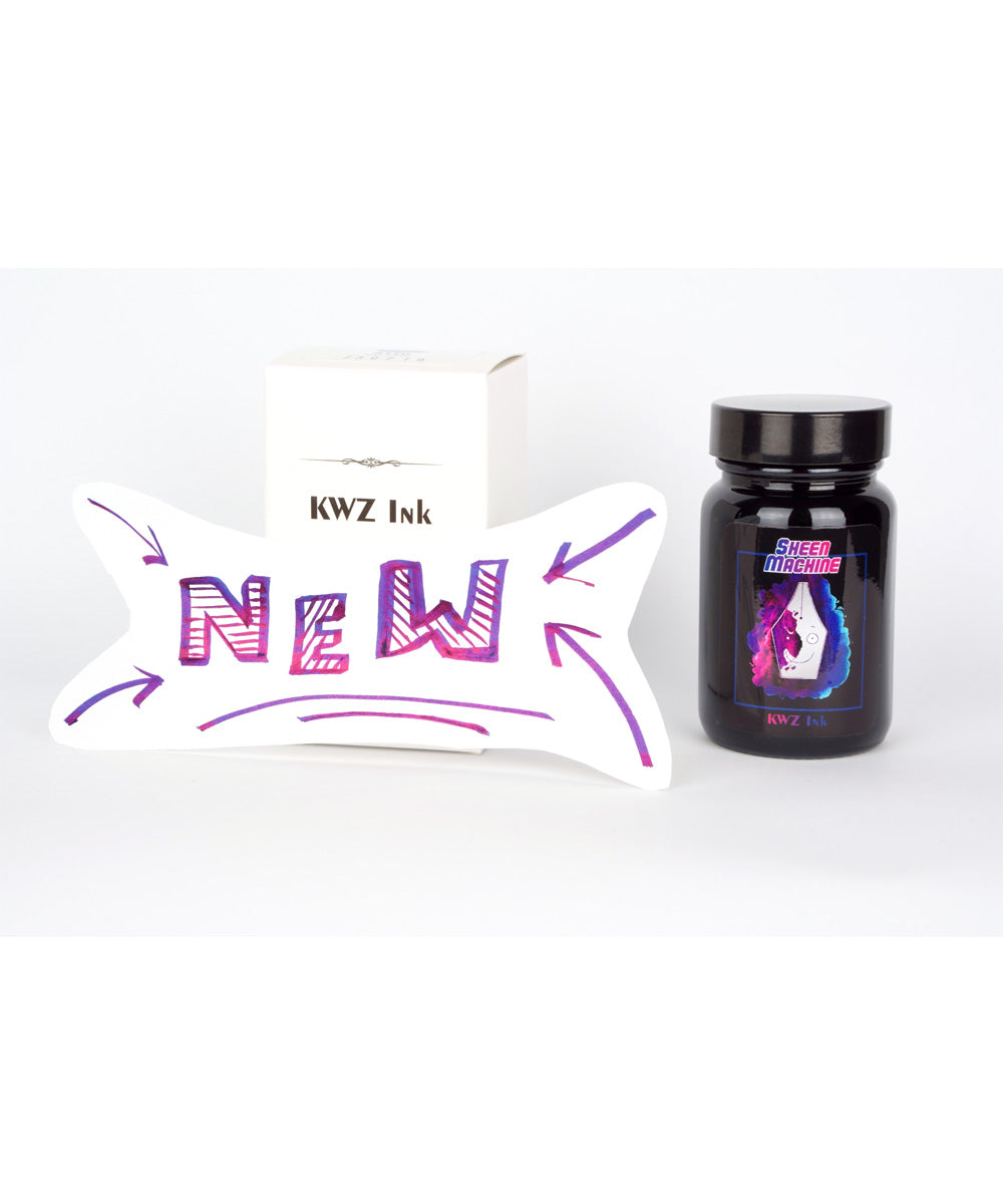 The latest KWZ handmade fountain pen ink in colour Sheen Machine from the KWZ Standard ink range. Sheen Machine has a blue colour base with a high red-purple sheen effect particularly visible on good quality smooth papers.
