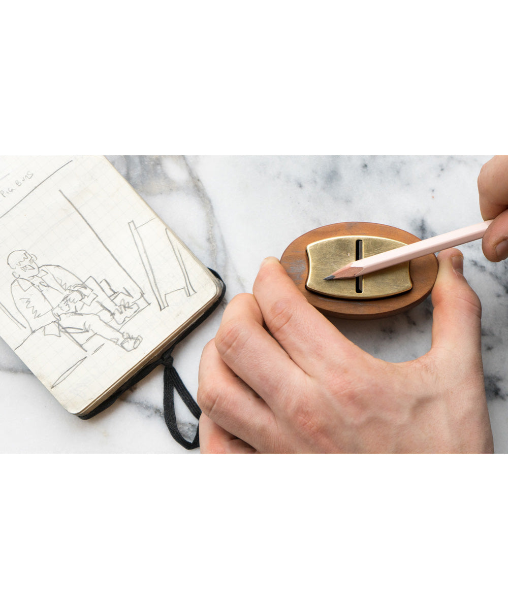 Høvel is a pencil sharpener that functions as a miniature plane, allowing you the freedom to achieve any point you like without the hassle of breaking the lead of your pencils like a typical sharpener sometimes does. It can be used as a long point sharpener, a flat sharpener, similar to the result you would achieve with a chisel or knife, or even for making very short and sturdy points.