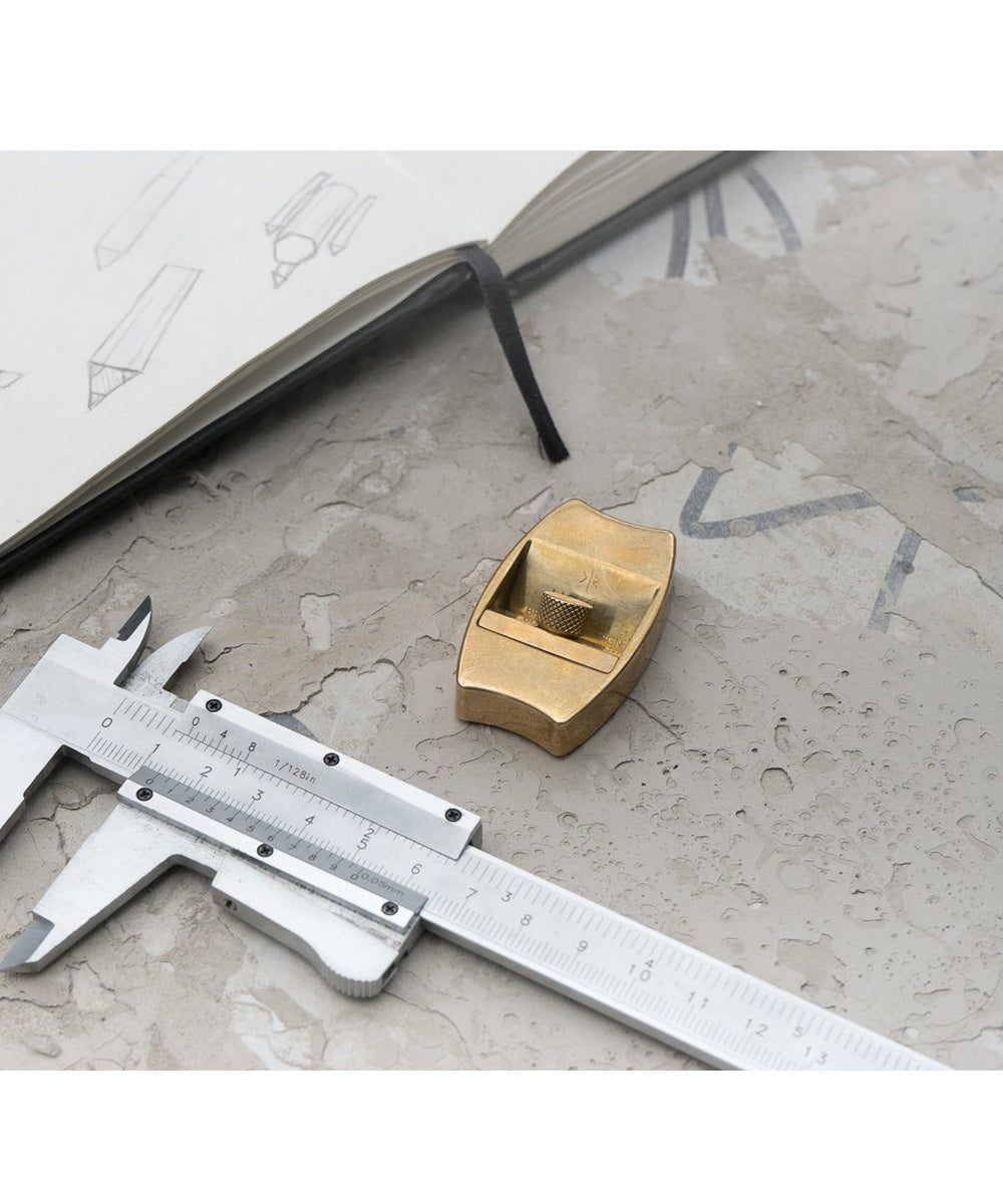 The blades are easily changed without the need for any tools by using the thumb screw that fastens everything together. The solid brass Høvel weighs in at around 90 grams and has a great weighted feel in the hand. Being a precision machined brass piece, Høvel will age beautifully and is made to last a lifetime. The Høvel comes with 10 replacement blades in the box.