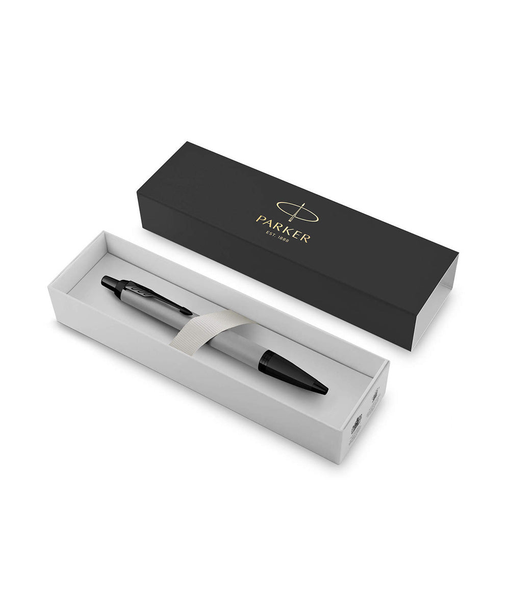 At once smart, polished and professional, the Parker IM Matte Grey BT is an ideal partner with unlimited potential. The sleek tapered shape pairs seamlessly with innovative designs to make a striking statement. The black finish trims complement the resolutely modern matte black lacquered body, making this Parker pen the perfect writing instrument for students and professionals. Retracting with a satisfying click, the ballpoint tip and Quinkflow ink ensure an exceptionally smooth and reliable writing experience. For use with Quink Ballpoint and Gel ink refills. Every detail is refined to deliver a writing experience that is at once dependable and faithful to over 130 years of Parker brand heritage.