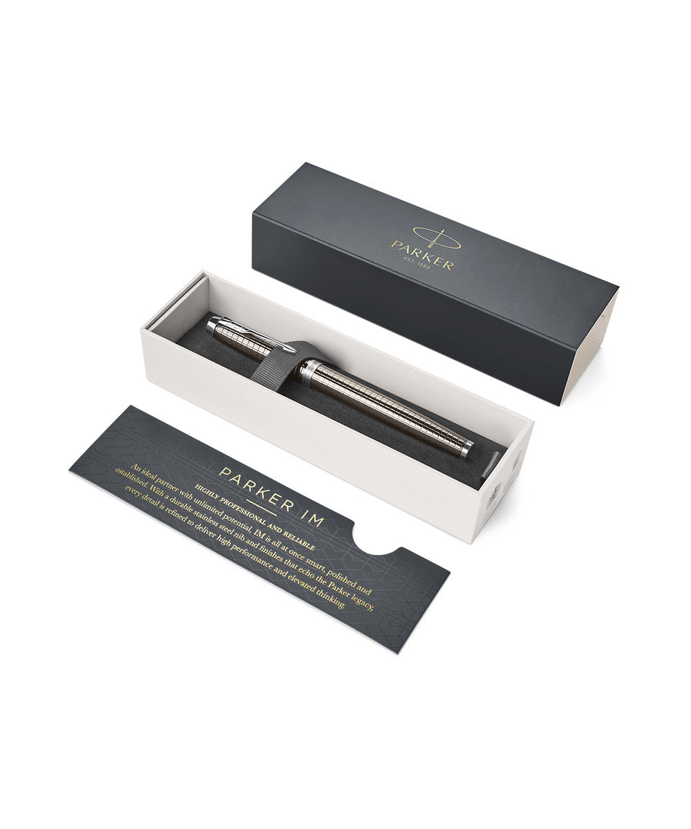 Focused on comfort and simple, high-performance functionality, the tapered contemporary shape of the new Parker IM Premium fountain pen teams up with the versatile appeal of metal to give instant, modern style. IM utilises a push on cap with a smooth click-lock mechanism and every detail is refined to deliver a writing experience that is always dependable.