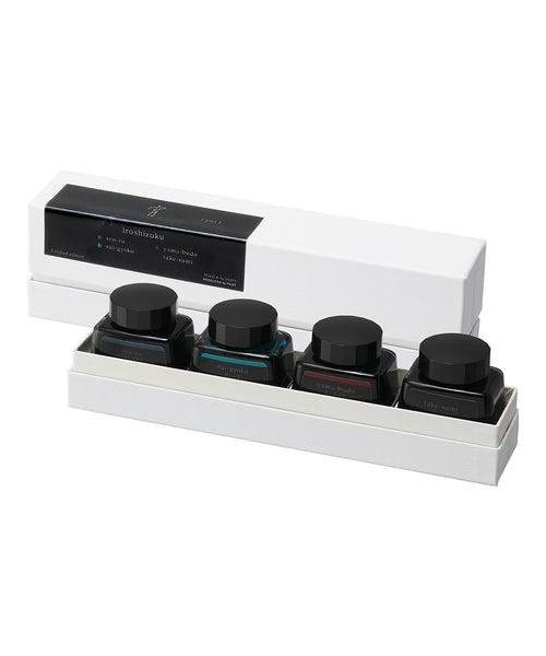 Enjoy Japan's rich and subtle colour aesthetic as you write with Iroshizuku fine fountain pen ink. Four carefully matched inks from the Iroshizuku range of vibrant and exciting colours all presented in 30ml bottles and presented in a gift box.