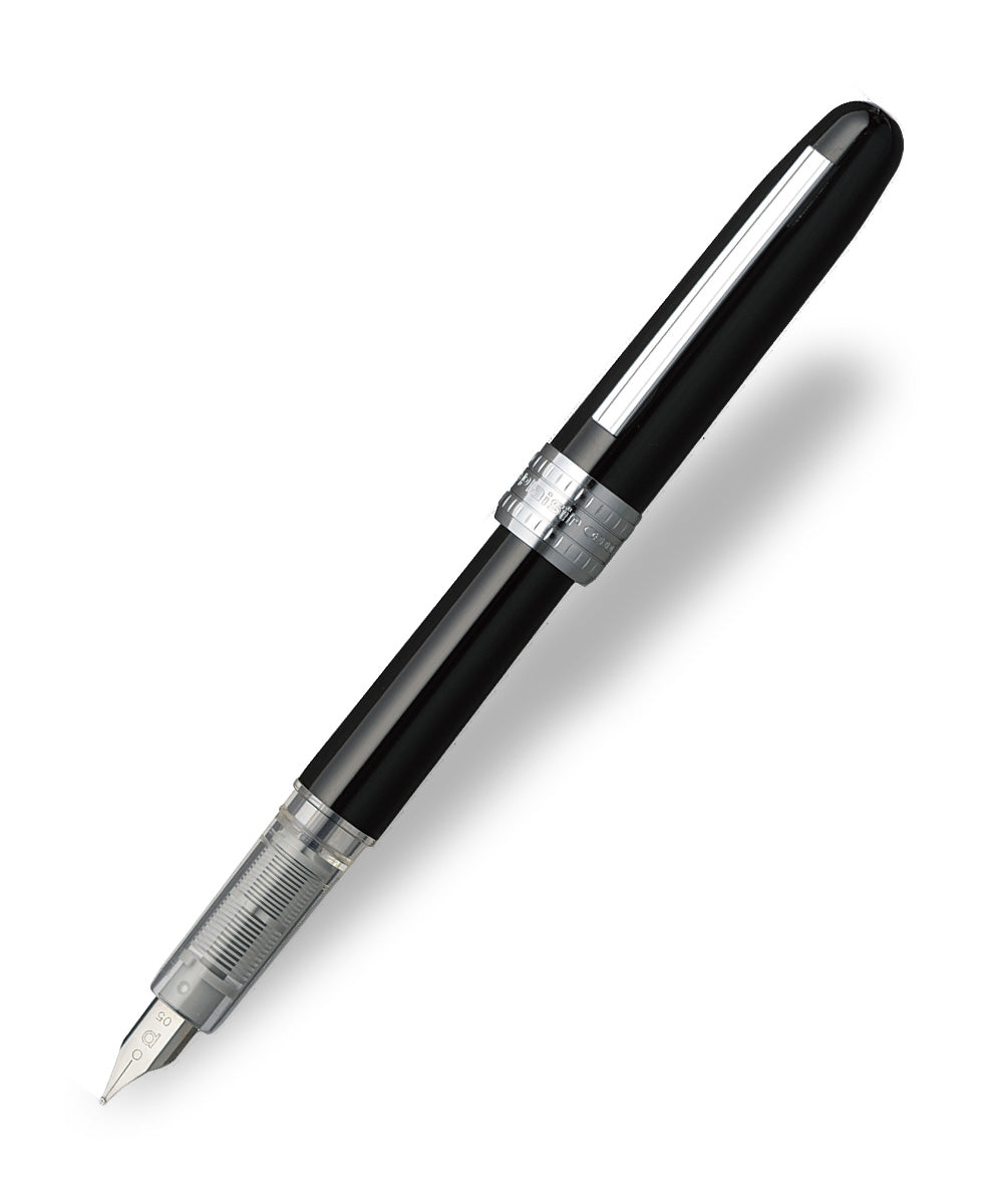 The Platinum Plaisir fountain pen is a development of the popular Preppy fountain pen but is produced from aluminium with a range of tough, anodised metallic finishes complemented by a chrome pocket clip and engraved cap ring. The Plaisir has a stainless steel nib available in fine or medium grades.