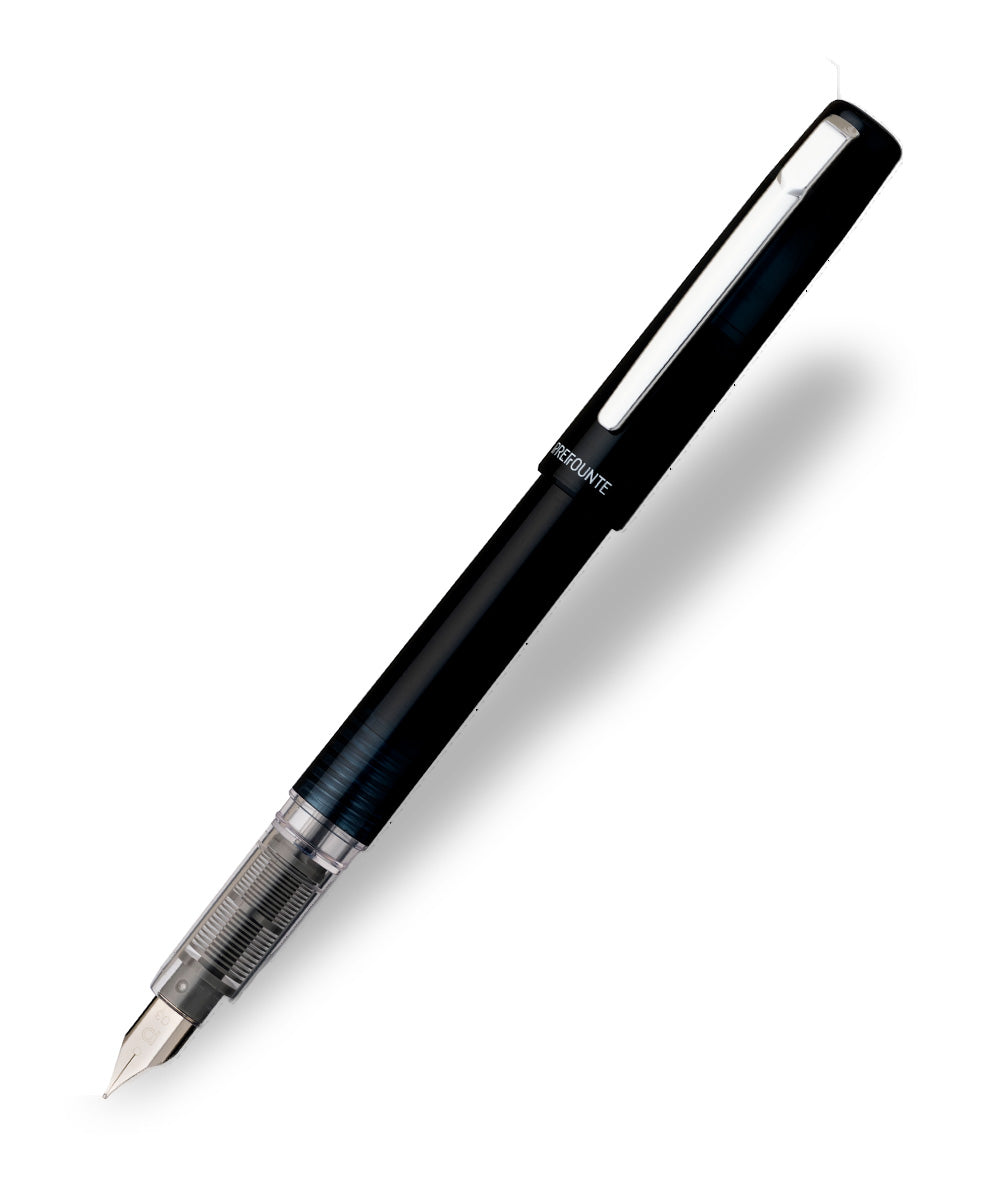 The Platinum Prefounte fountain pen has simple lines from a design inspired by sophisticated urban images. The Prefounte fountain pen has a translucent cap and barrel, a hi-tech feed system to ensure reliable ink flow and comes with one blue/black ink cartridge.