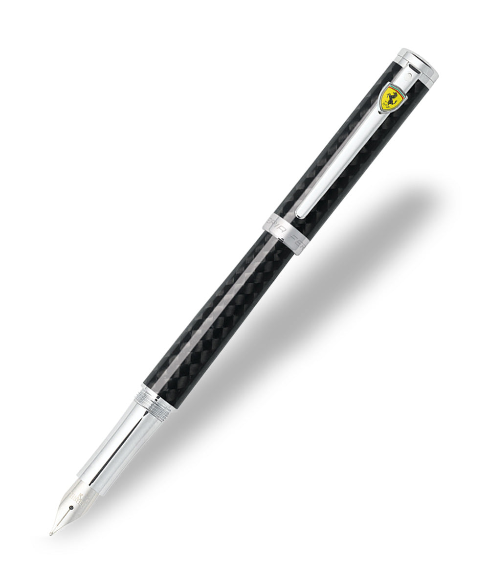 The Sheaffer Ferrari Intensity fountain pen has a carbon fibre barrel with a fine polished steel nib, comes with two ink cartridges and an ink converter should bottled ink be your preference and is presented in a Ferrari gift box bearing the Scuderia Ferrari Shield.