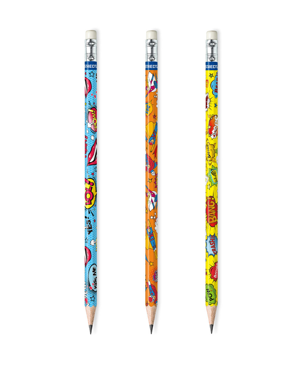 Staedtler Comic Art HB pencils feature 3 comic book designs that are sure to be a hit with young and old and with all comic book fans! Each pack contains two pencils each of 3 different comic art designs, 6 pencils in total.