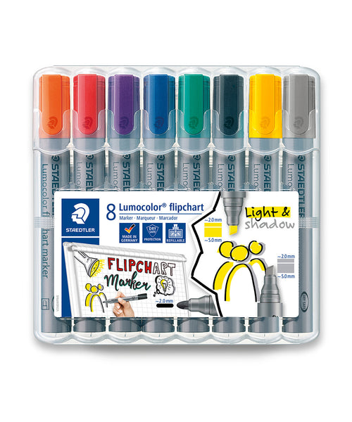 About Staedtler Lumocolor Flipchart Marker Pens - 8 Assorted Colours