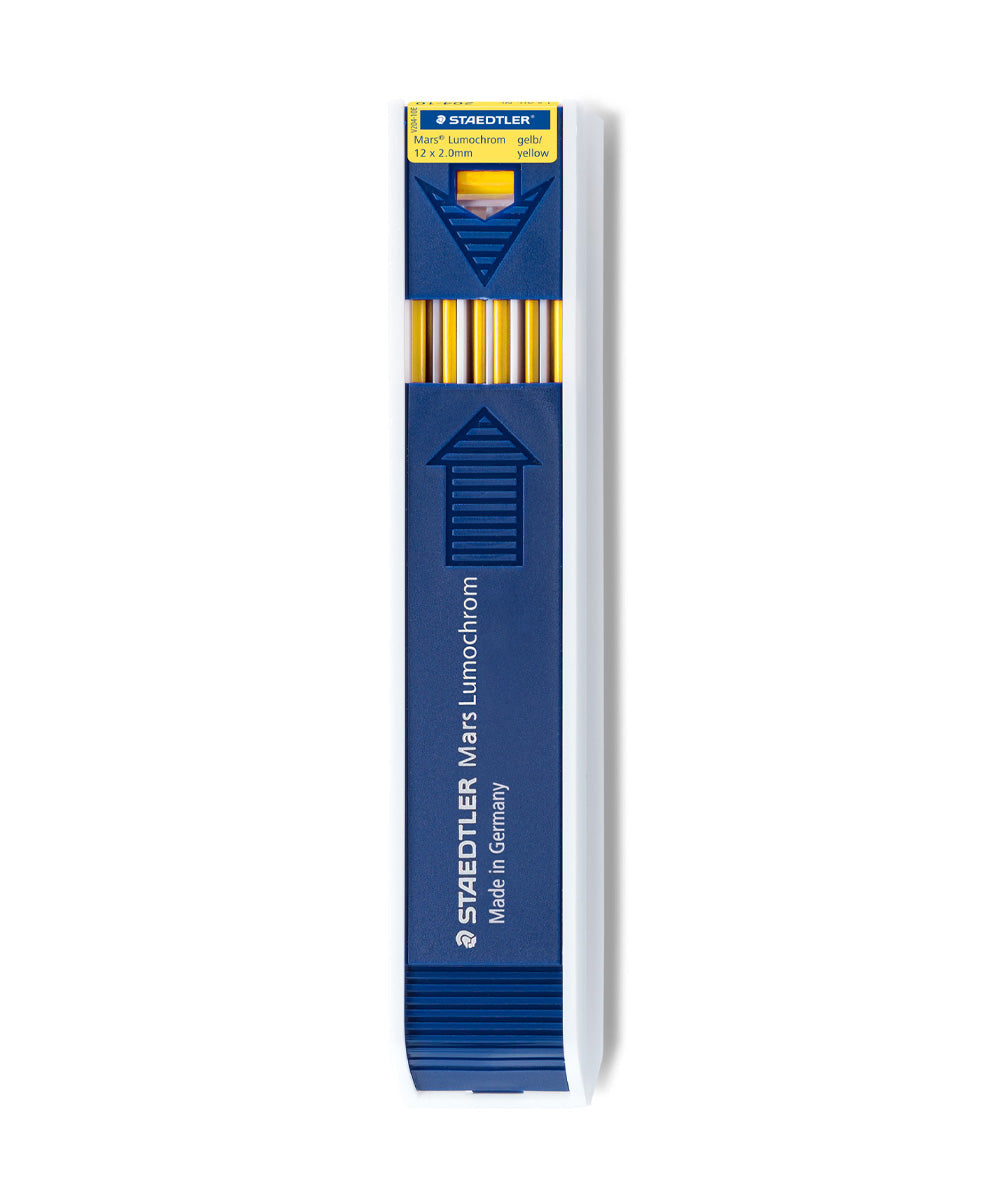 Top quality lumochrom leads from world class manufacturer Staedtler. Tough plastic boxes of 2mm diameter leads, 130mm long, ideal for use in the Technico 780 or 788 lead holders from Staedtler or any other clutch pencil requiring 2mm leads.