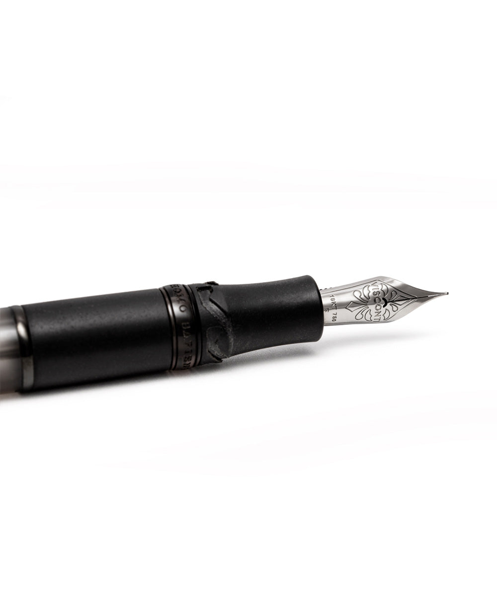 The fountain pen features Visconti's 18ct gold nib which has an elegant ruthenium plate and needless to say, it is an absolute dream to write with. The nib has a gorgeous amount of flex giving a truly comfortable writing experience. Fitted with Visconti's Double Reservoir Power Filler system and presented in a Visconti gift box.